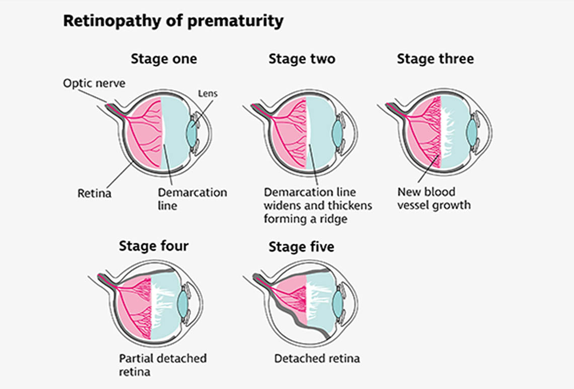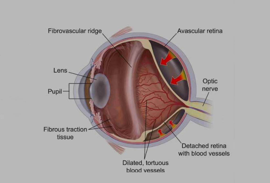 ROP occurs when the eye’s blood vessels stop growing for a time, then begin growing abnormally and randomly.